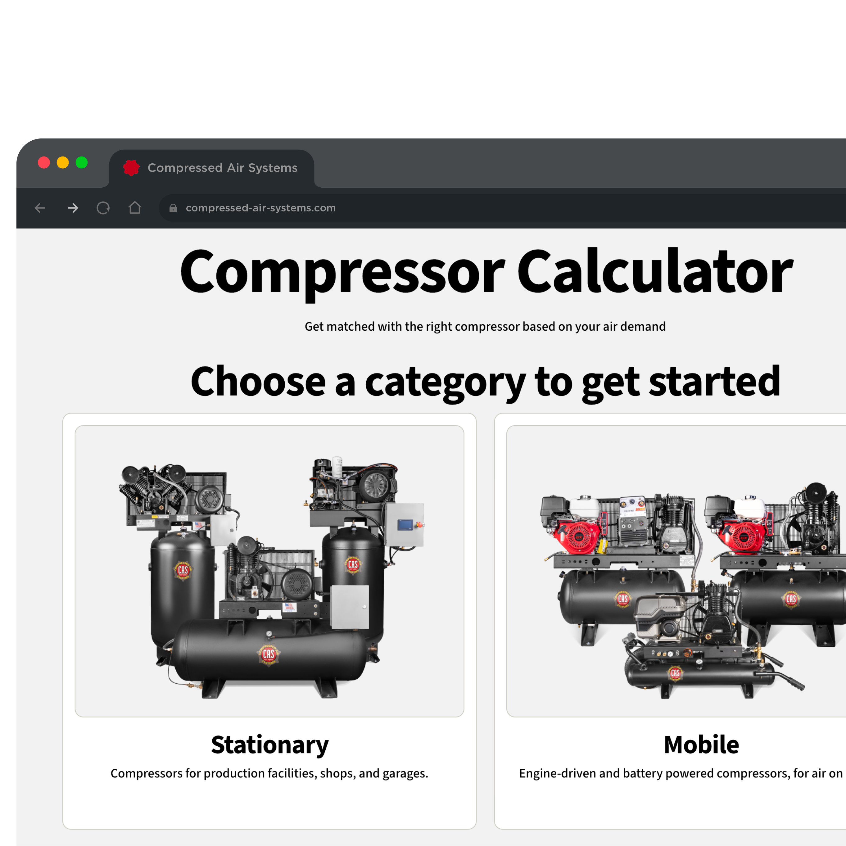 A powerful tool that recommends theperfect air compressor based on your air demand.